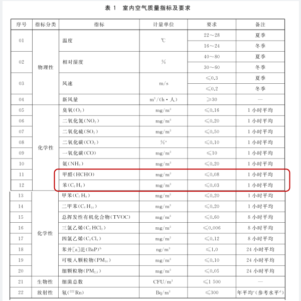 值得注意的是,與GB/T 18883-2002相比,GB/T 18883-2022中甲醛和苯的指標(biāo)要求更加嚴(yán)格,甲醛從≤0.1mg/m3調(diào)整為≤0.08mg/m3,苯從≤0.11mg/m3調(diào)整為≤0.03mg/m3。
